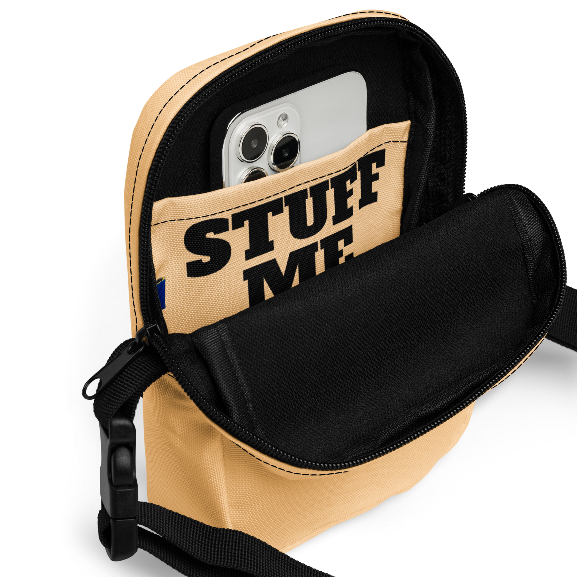 Take the stuff you need with you. This bag is sturdy, stylish, and just the right size to carry the essentials a himbo needs when out and about. Hold your wallet, phone, keys, or whatever other small necessities. Perfect for when that cute outfit doesn't include pockets. With adjustable straps and two spacious compartments, it’s the ultimate accessory for walking, festivals, and everyday use.